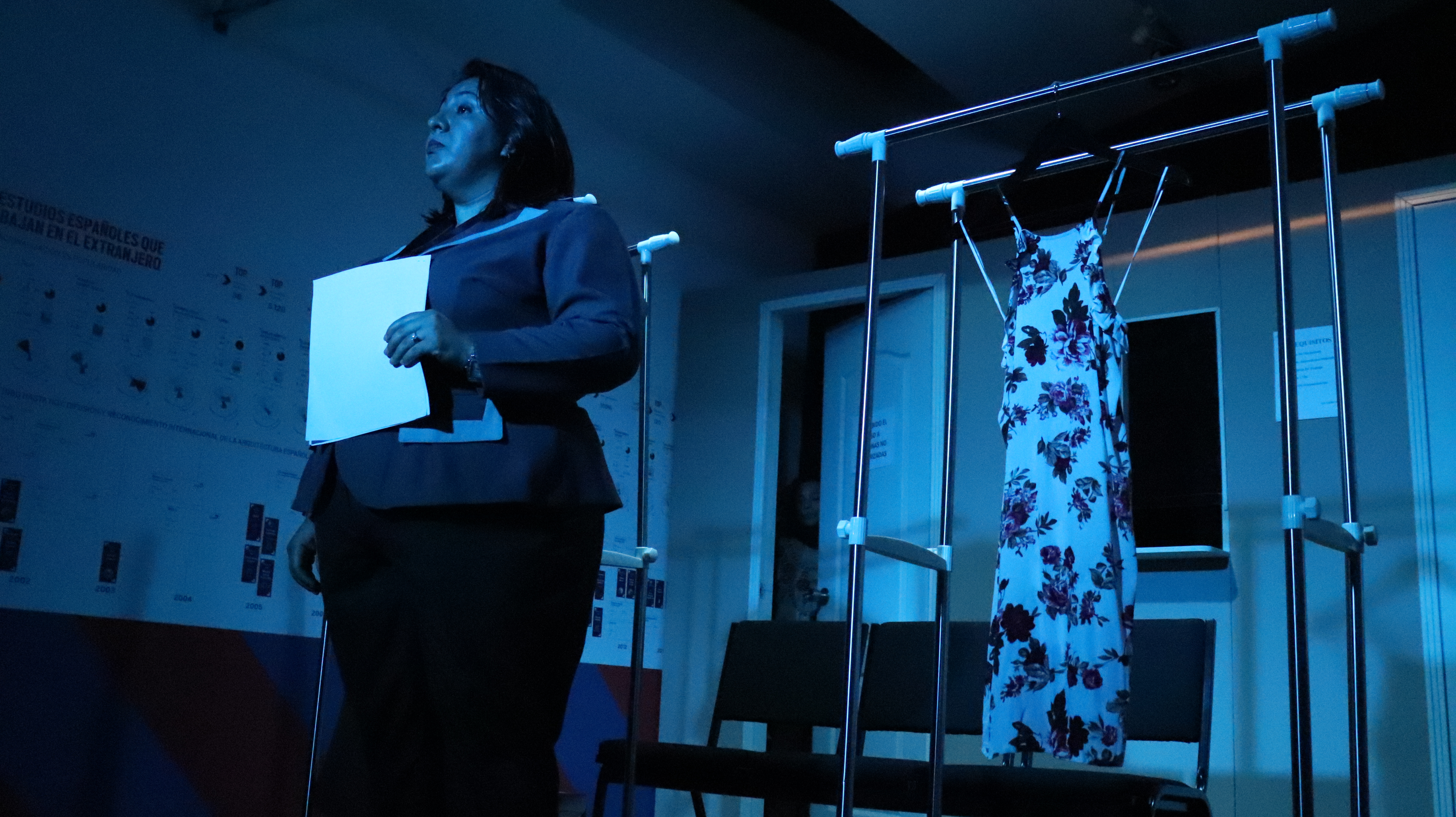 Dos mujeres se encuentran en una sala de espera. Cada una lleva una caja llena de papeles que van a decidir si pueden entrar o no. Entrar, sí, pero ¿dónde? ¿Qué les pasará si entran? ¿Qué les pasará si no pueden entrar?