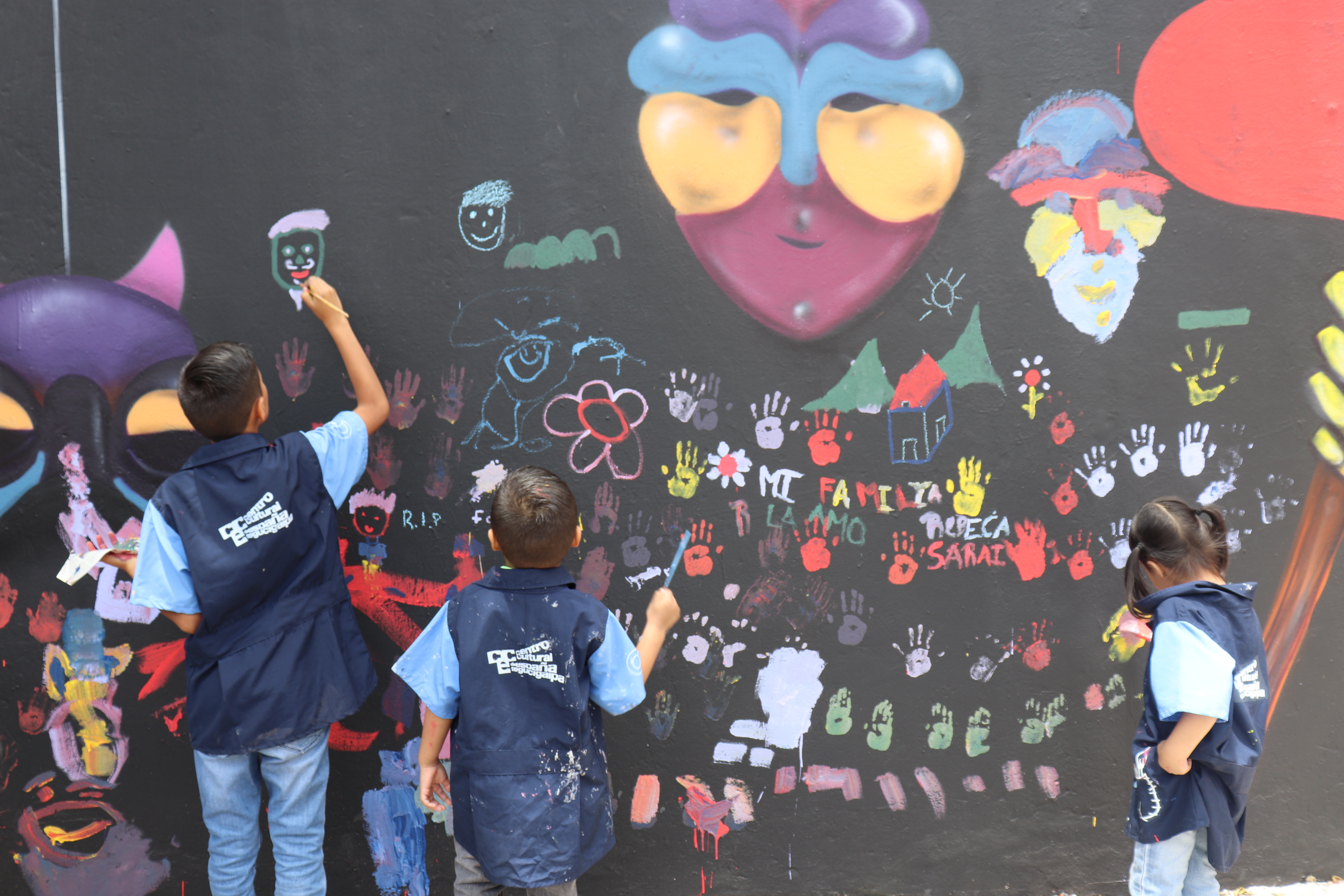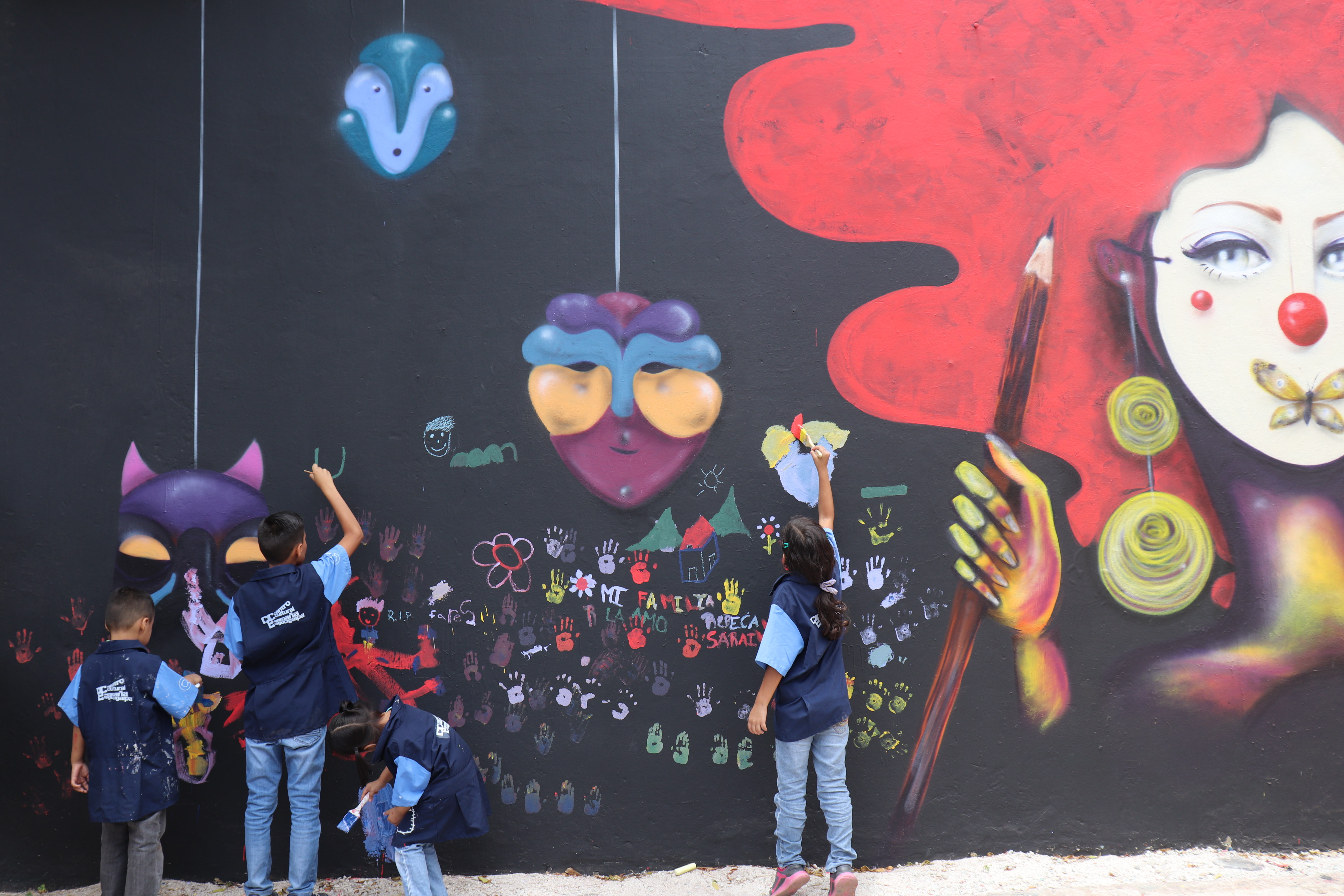 En esta actividad infantil ayudamos a la artista a terminar esta gran obra que decora las paredes del centro.