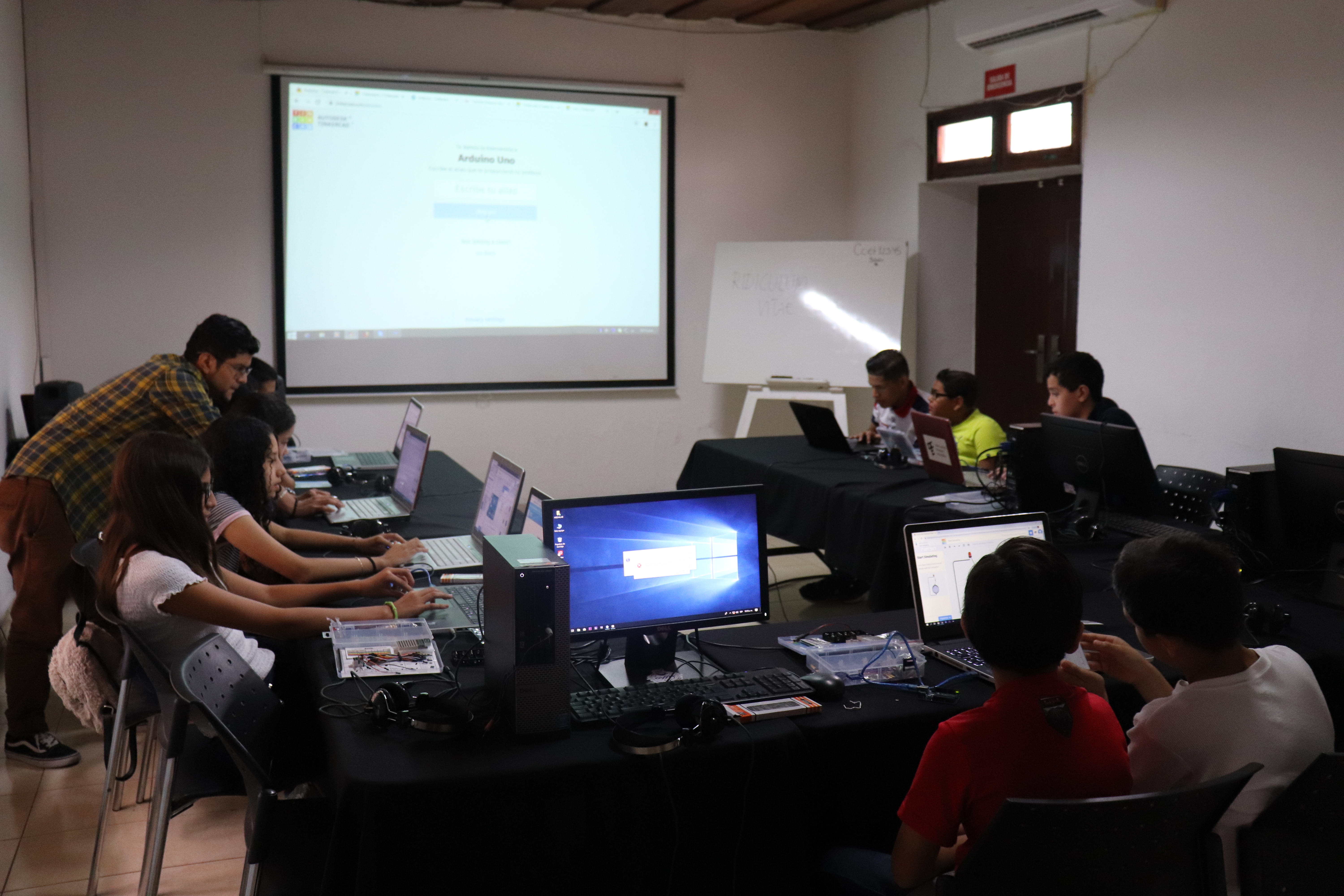 En este taller corto los niños conocerán el poder que nos brindan los microcontroladores en cada uno de los dispositivos que cotidianamente usamos y realizarán un pequeño proyecto usando placas Arduino.